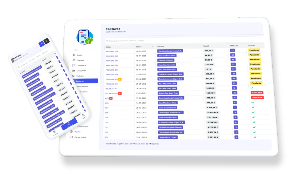 - Facturación: Permite crear y gestionar facturas de forma sencilla.
